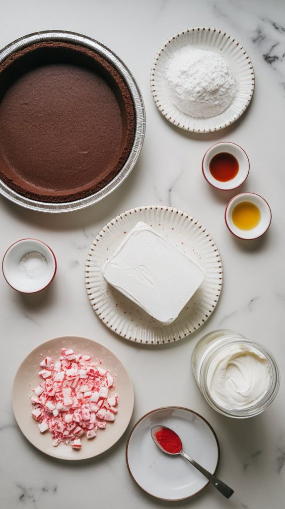 Cream cheese gives this pie structure and richness, while the whipped topping adds lightness. Peppermint extract delivers concentrated flavor without watering down the mix. The crushed candy melts a little into the cream, leaving behind pockets of sweet crunch.
