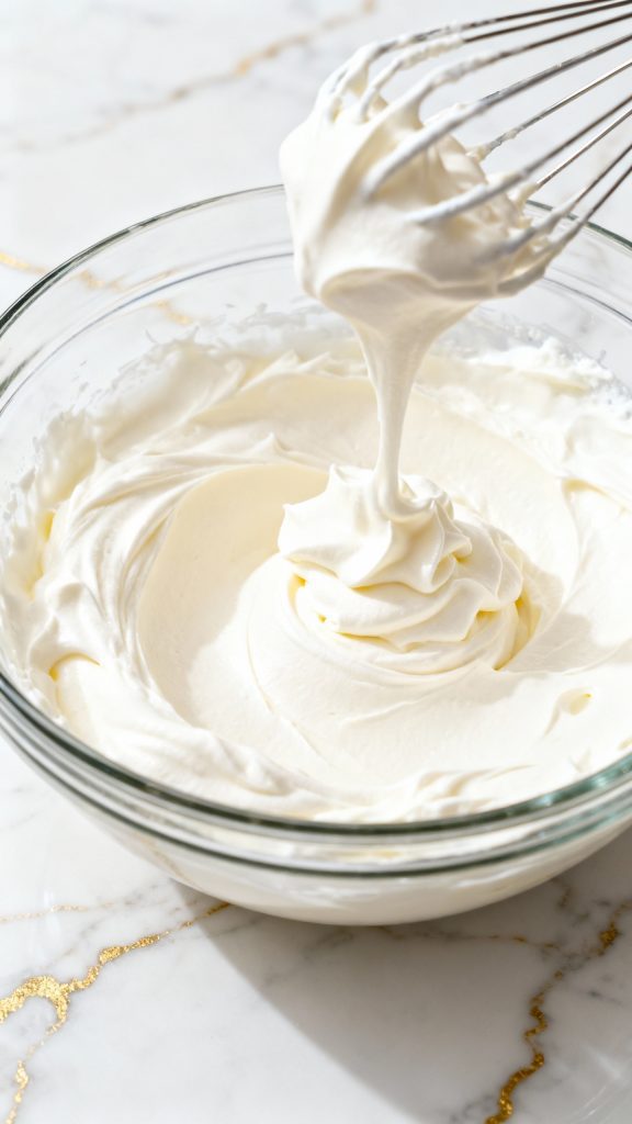 In a bowl, beat 8 oz softened cream cheese, 1 cup powdered sugar, 1 tsp vanilla extract, and 1/2 cup cold heavy cream until fluffy and smooth.