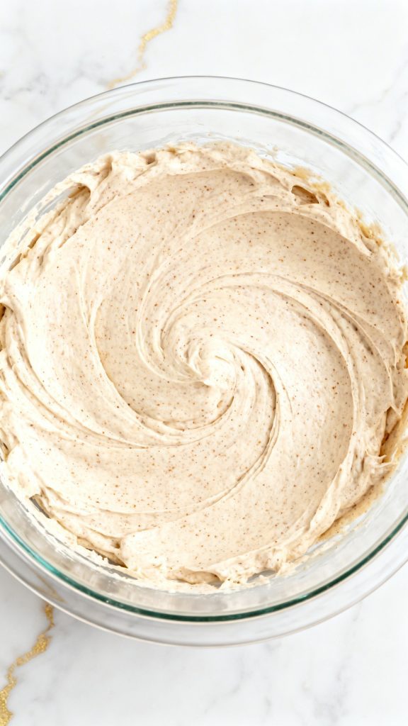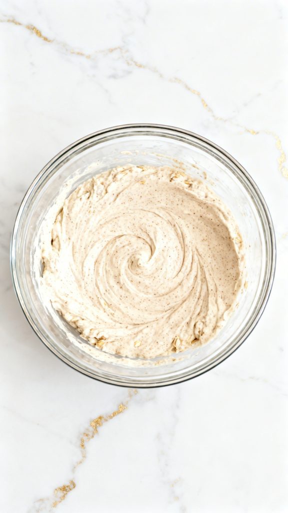 In a medium mixing bowl, add 1 cup cottage cheese, 1 cup rolled oats, 1/2 cup unsweetened applesauce, 1 large egg, 1/2 teaspoon ground cinnamon, 1 tablespoon honey, 1/2 teaspoon baking powder, and 1 pinch salt. Stir well until the mixture looks evenly combined. The batter will look thick, soft, and a little textured from the oats and cottage cheese.