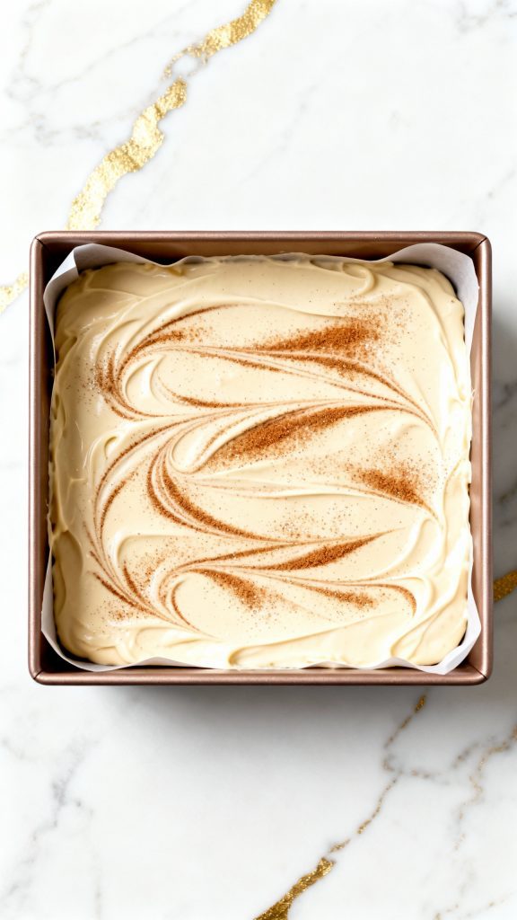 Pour half the white chocolate fudge into the lined pan and spread evenly. Drop spoonfuls of the cinnamon mix on top and gently swirl with a knife. Pour in the rest of the fudge, then swirl more cinnamon mixture on top.