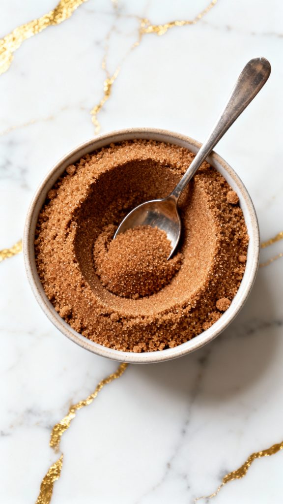 In a small bowl, mix 2 tsp ground cinnamon, 2 tbsp brown sugar, and 1 tbsp melted butter until it looks like wet sand.