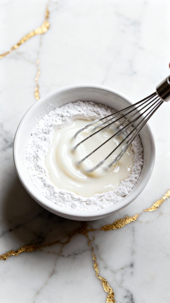In a small bowl, whisk together ½ cup powdered sugar and 1 tbsp milk until smooth.