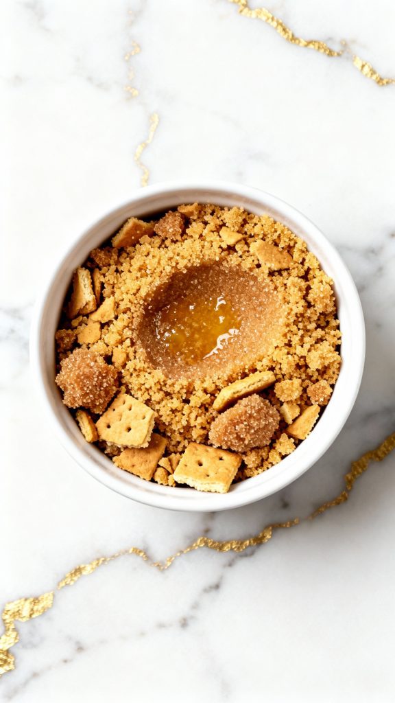 In a small bowl, combine 1 cup crushed graham crackers, 3 tablespoons melted unsalted butter, and 1 tablespoon brown sugar. Stir everything together until the texture looks like wet sand and all the crumbs are evenly coated with butter.