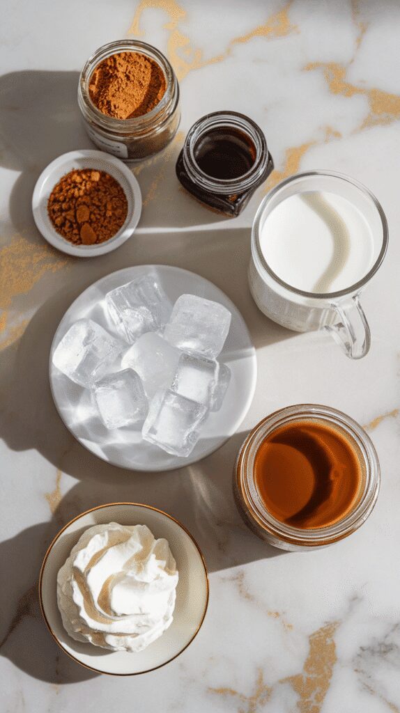 Brown sugar adds molasses depth, which pairs beautifully with cinnamon’s warm spice notes. Vanilla extract rounds out the flavors, mimicking that classic cinnamon roll frosting taste. Mixing hot syrup into cold milk and coffee creates a sweet, creamy base that doesn’t feel gritty.