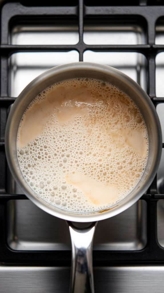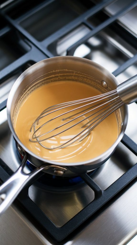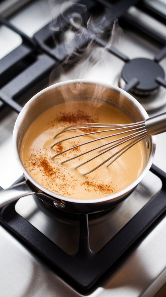 Place the pot back on medium heat. Whisk constantly until the mixture thickens slightly — about 4–5 minutes. Don’t let it boil.