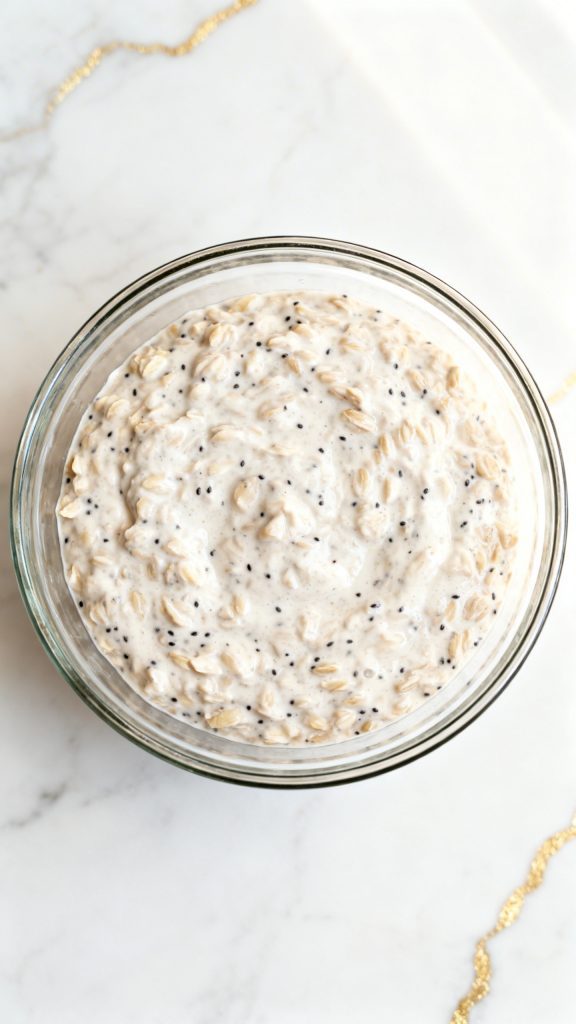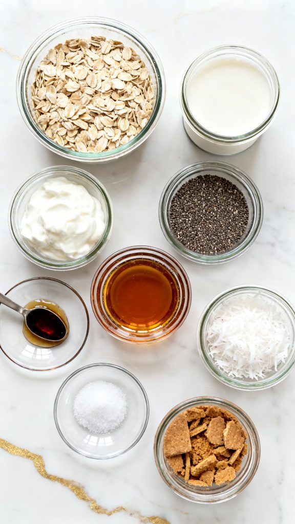 Overnight oats work because the oats slowly absorb liquid while they chill. That softens them without cooking. The chia seeds also soak up moisture and create a thicker texture, which makes the oats feel creamy and spoonable. Greek yogurt adds body and richness, while coconut milk brings fat and flavor, so the final texture feels more like dessert than plain oatmeal.
