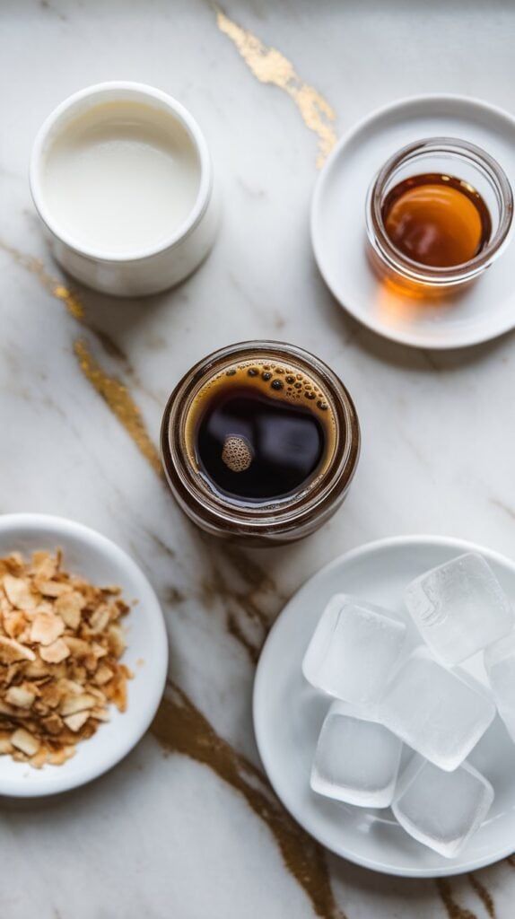 You can brew your cold brew coffee the night before and chill it so it’s ready to go. You can also toast coconut flakes ahead and store them in an airtight container.