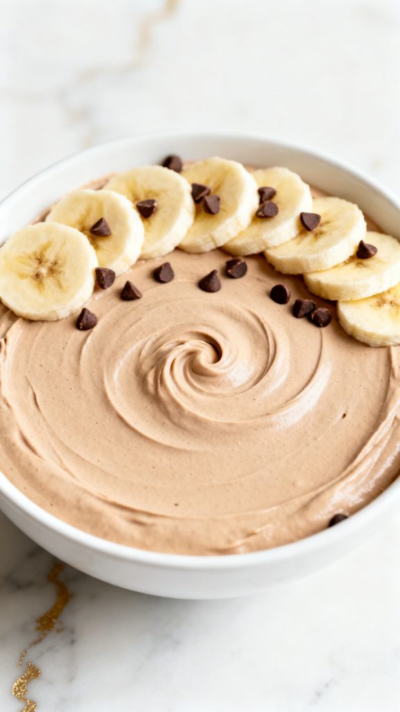 Top with 1 sliced banana and 1 tablespoon mini chocolate chips. You can gently press them into the surface or leave them on top.