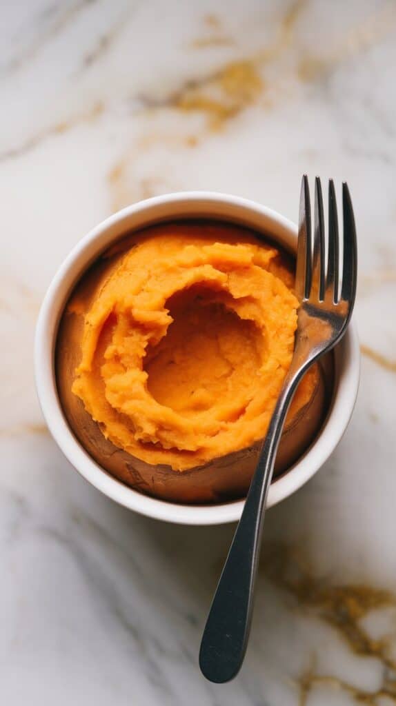 - 1 cup mashed cooked sweet potato (about 1 medium sweet potato)