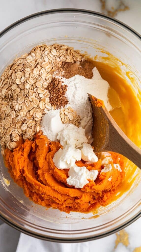 Sweet potato adds both sweetness and moisture—no dry muffins here. Cottage cheese blends right in when mixed and baked, giving you a tender crumb and a boost of protein without making the muffins taste cheesy. Baking soda and powder work together to lift the heavy batter while keeping things fluffy.