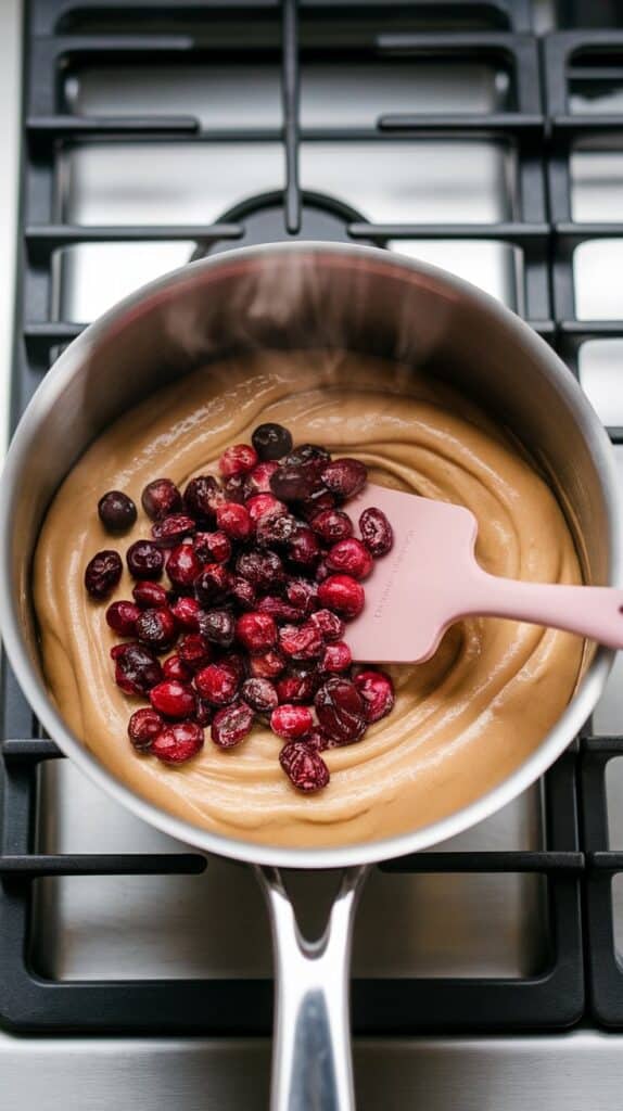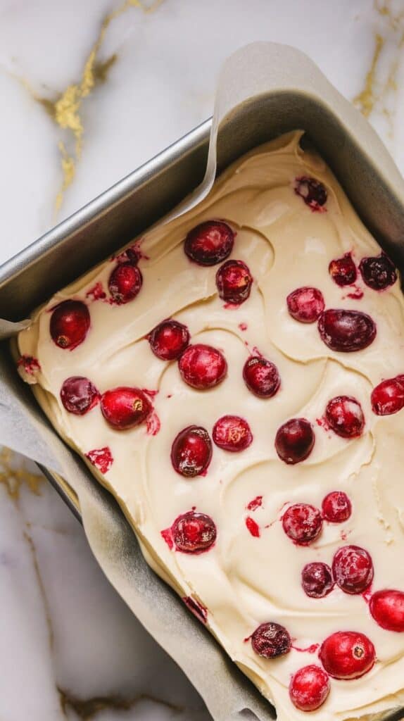 Add 1 cup dried cranberries and gently fold them into the fudge mixture until evenly distributed.
