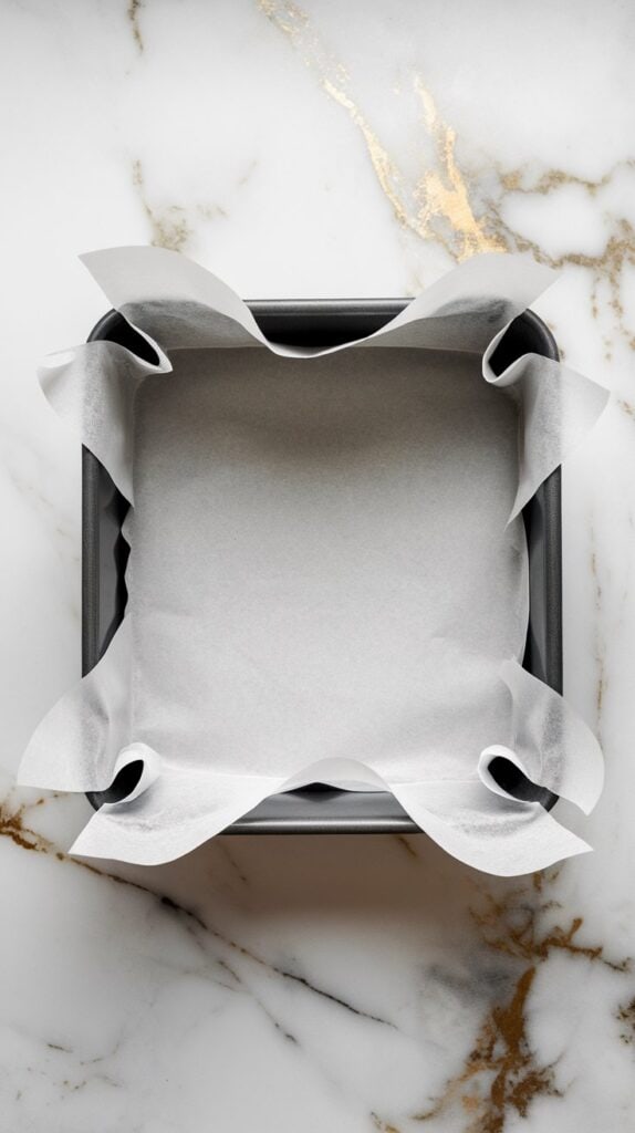 Line an 8×8-inch baking pan with parchment paper, letting some hang over the sides so you can lift the fudge out easily later.