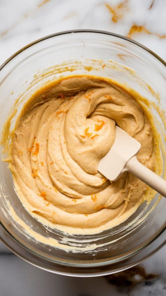 Pour the wet mixture into the bowl with the dry ingredients. Gently fold together using a spatula until just combined (don’t overmix).