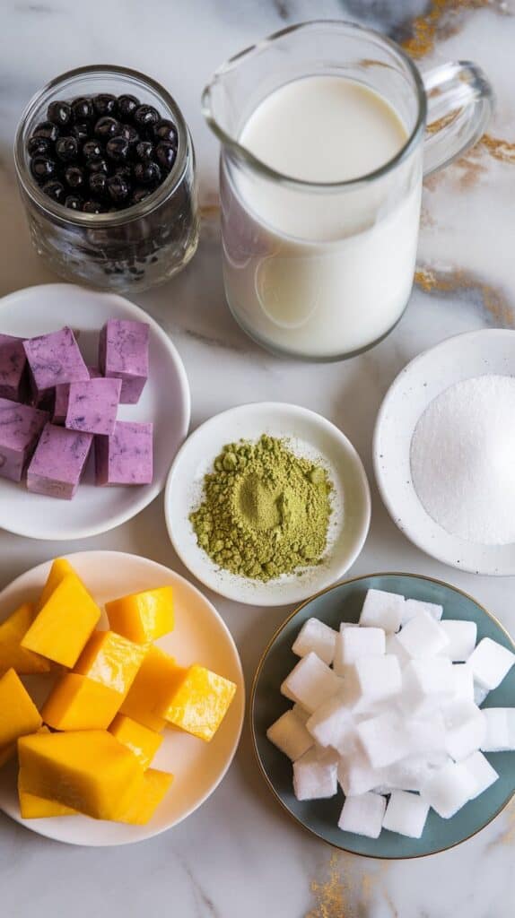 - Optional toppings: condensed milk drizzle, extra boba, whipped cream