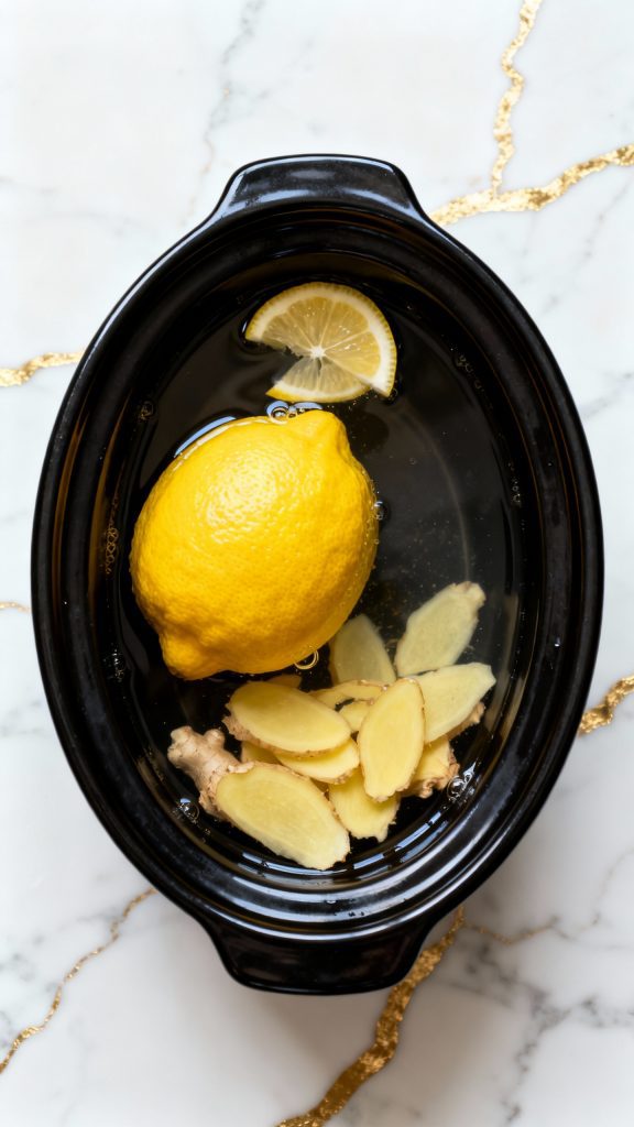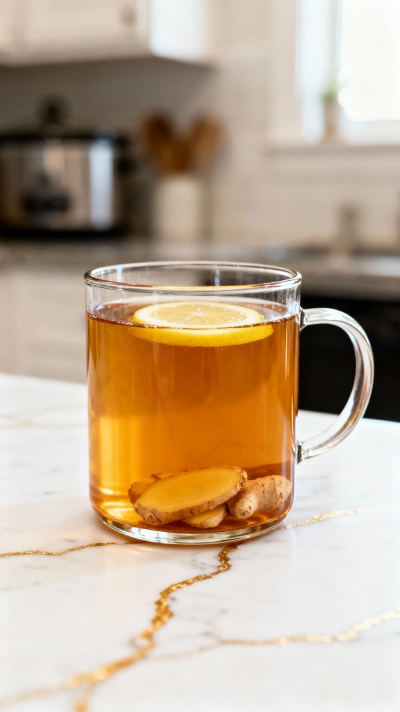 Ginger contains gingerol, a natural compound that has anti-inflammatory and antioxidant properties. Lemon adds vitamin C and helps brighten the flavor. Honey acts as a natural sweetener and soothes your throat. Slow cooking allows all those flavors to slowly release into the water, creating a well-rounded, deeply infused tea that’s both comforting and beneficial.