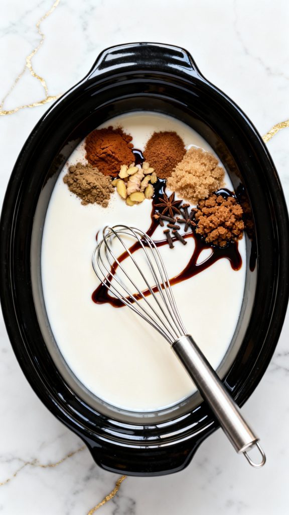 Warming the milk slowly in the Crockpot allows the spices to bloom and infuse into the liquid without burning the dairy. The molasses adds depth and that signature gingerbread flavor. Brewed espresso brings boldness that balances the sweetness, while the whipped cream on top adds that coffee shop finish.
