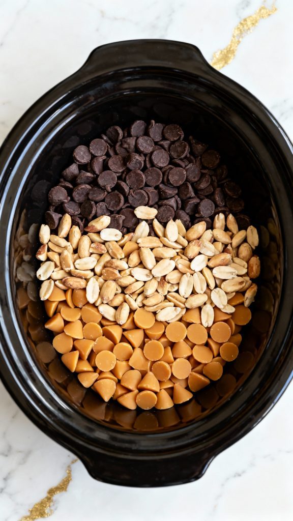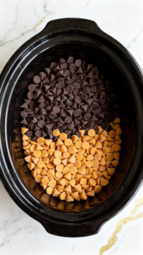 Step 1: Add Chocolate and Butterscotch Chips to Crockpot