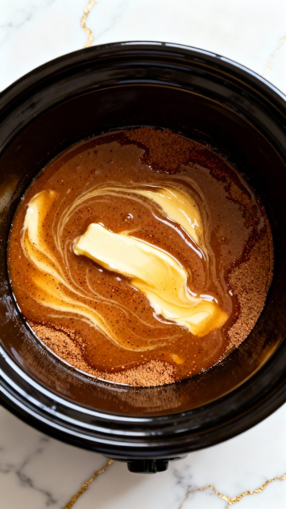 Butter melts slowly in the crockpot, which helps it blend smoothly with the sugar instead of separating. Brown sugar dissolves into the warm water, creating a rich base. The low heat lets the spices bloom without turning bitter, and adding the rum at the end keeps the flavor strong without cooking it off.