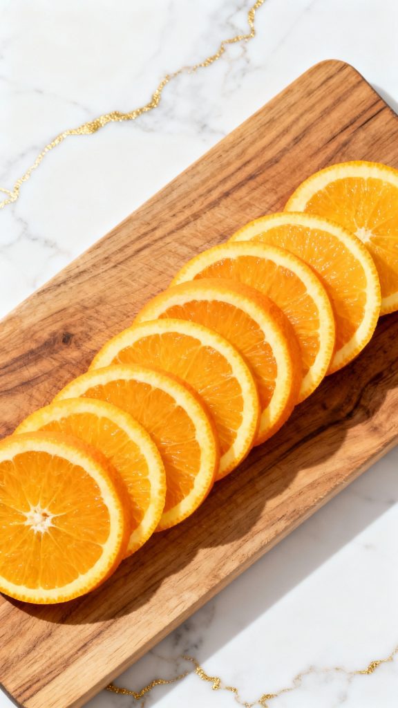 Slice 1 orange into thin, round slices—about 1/4 inch thick. Leave the peel on for extra flavor.
