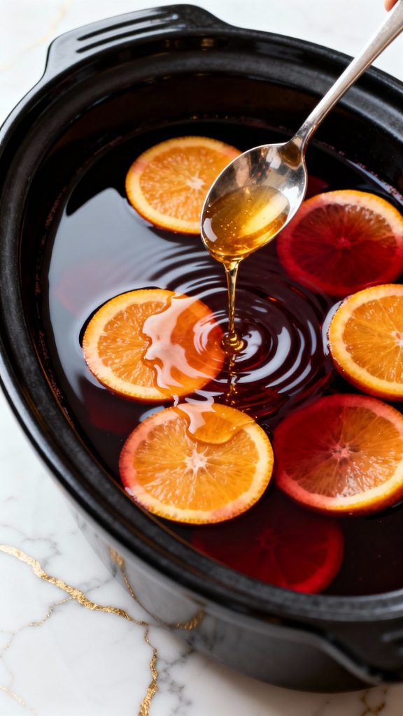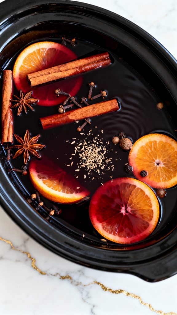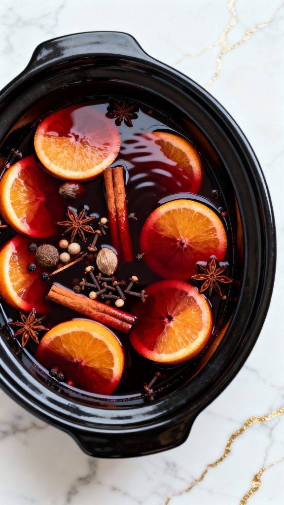 The slow heat from the crockpot helps the spices release their essential oils without making the wine bitter. Cooking it low and slow also prevents the alcohol from evaporating too fast, keeping the depth and warmth in the drink. Orange peel adds natural citrus oils that blend beautifully with the spices.