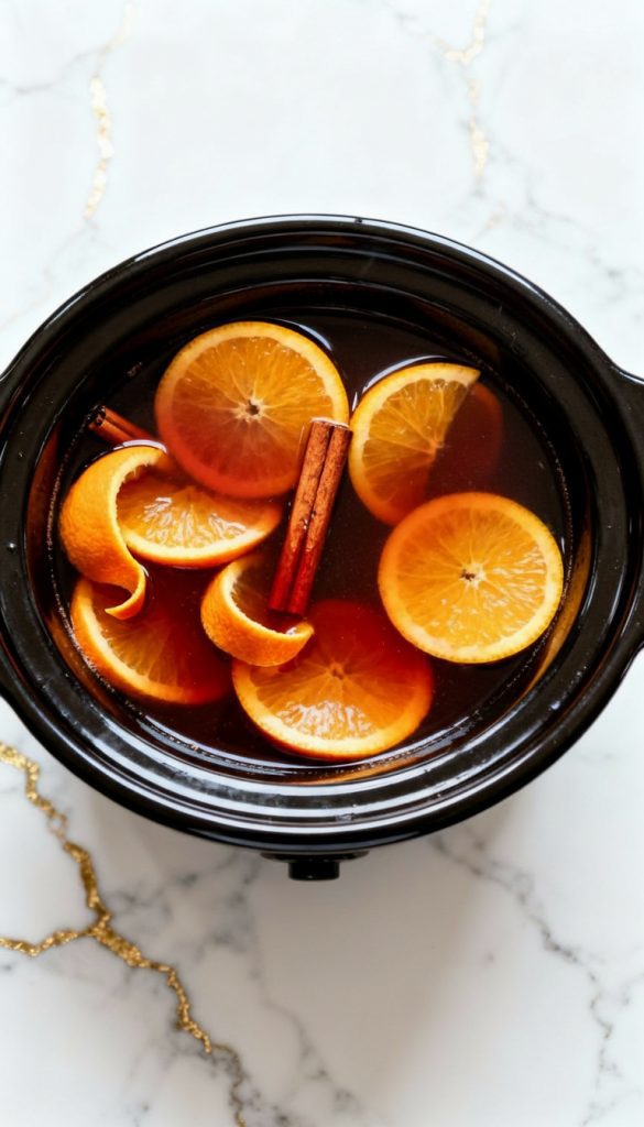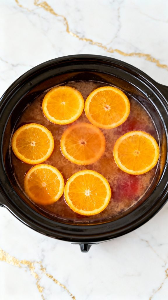 You can slice the oranges and measure out all the spices and sugar the night before. Just store the dry ingredients in a sealed container and the orange slices in the fridge. In the morning, dump it all in and start the crockpot.