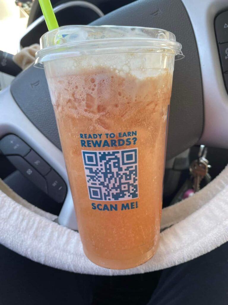 You have to try the Peach Strawberry Apple Rebel if you’re looking for a fruity and refreshing drink without coffee.