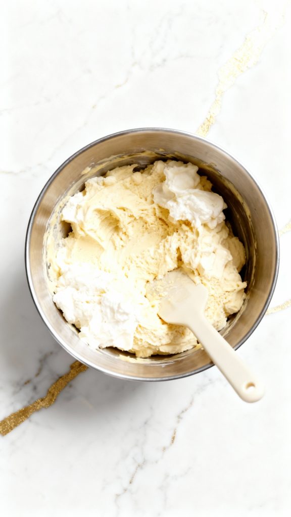 Fold the whipped cream gently into the pudding mixture until fully blended and smooth.