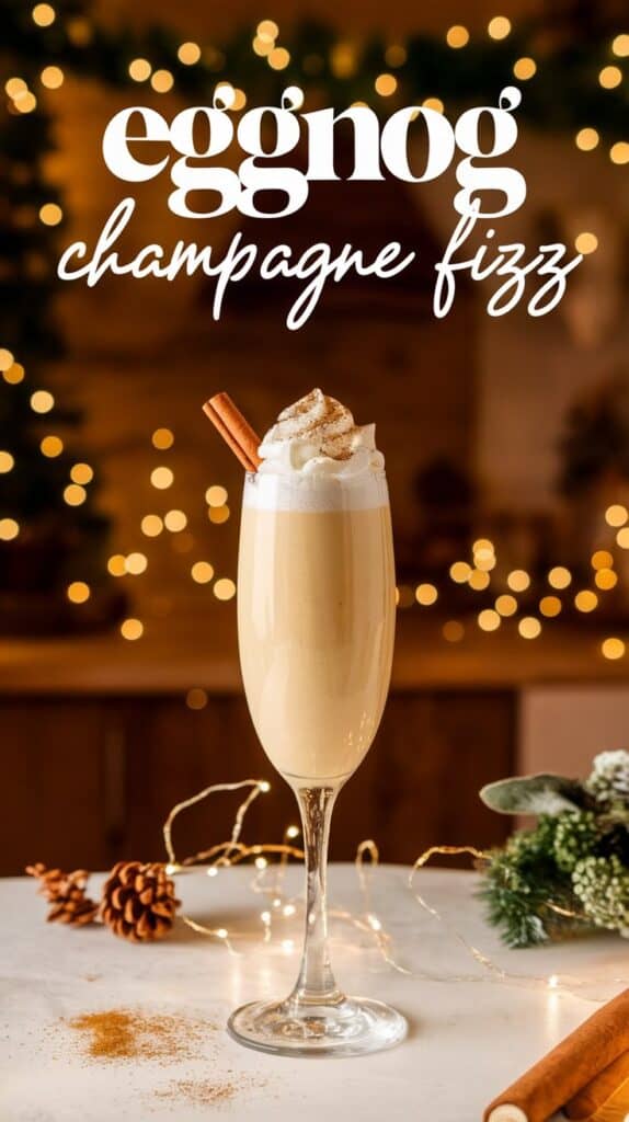 It’s basically Christmas in a glass—with a pop! You mix rich, cozy eggnog with crisp, bubbly champagne, and it turns into a creamy cocktail that’s surprisingly light.