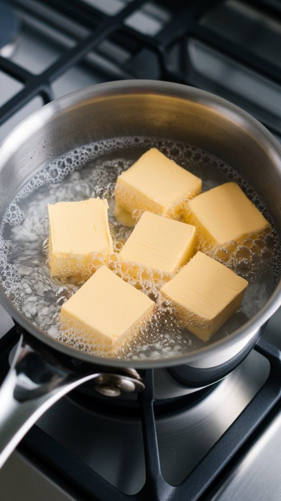 In a medium saucepan, combine ½ cup unsalted butter (cubed), 1 cup water, and ½ tsp salt. Bring to a rolling boil over medium heat.