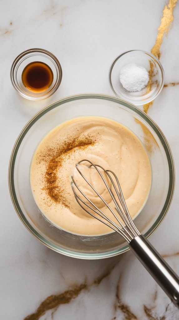 Stir in ½ tsp ground nutmeg, 1 tsp pure vanilla extract, and a pinch of salt.