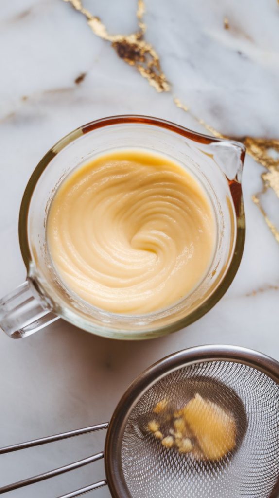 Pour the mixture through a fine-mesh sieve into a large measuring cup or bowl with a spout. This makes the texture silky smooth.
