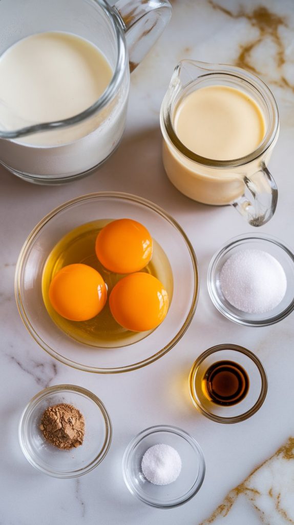 Egg yolks thicken the custard without curdling when baked gently in a water bath. The cream and eggnog balance richness with flavor, and sugar on top melts into a crisp layer because it’s dry and exposed to high heat. That contrast—creamy under crisp—is what makes it irresistible.