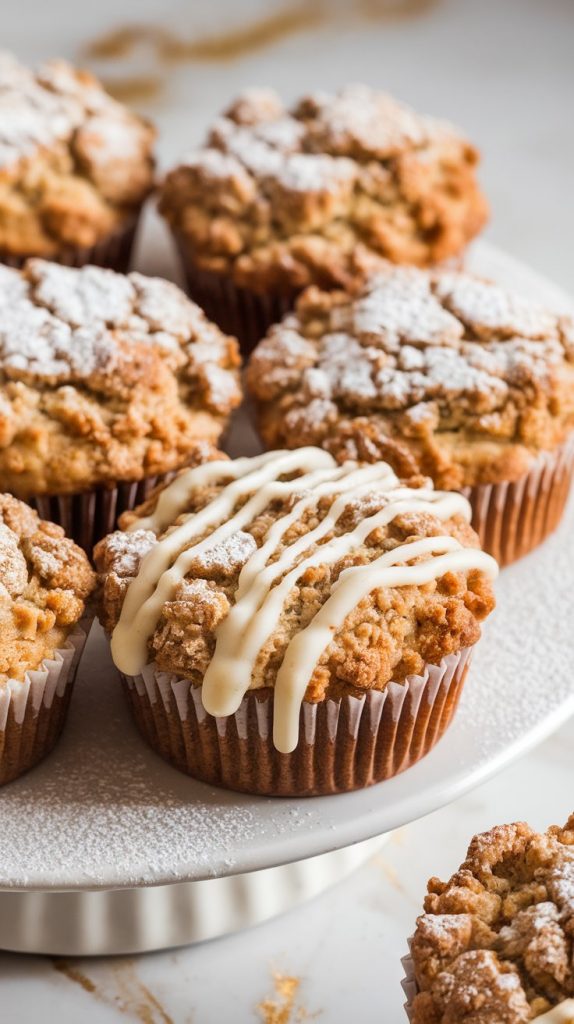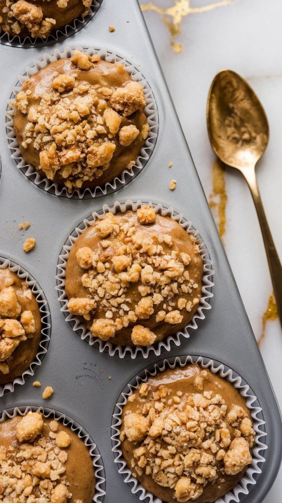 You can make the batter and crumble topping the night before. Store them separately in the fridge, then assemble and bake in the morning. Baked muffins also freeze great — just reheat in the microwave for 20–30 seconds.