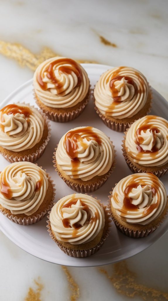 Once cupcakes are cool, pipe or spread frosting on top. Drizzle with extra caramel if desired.