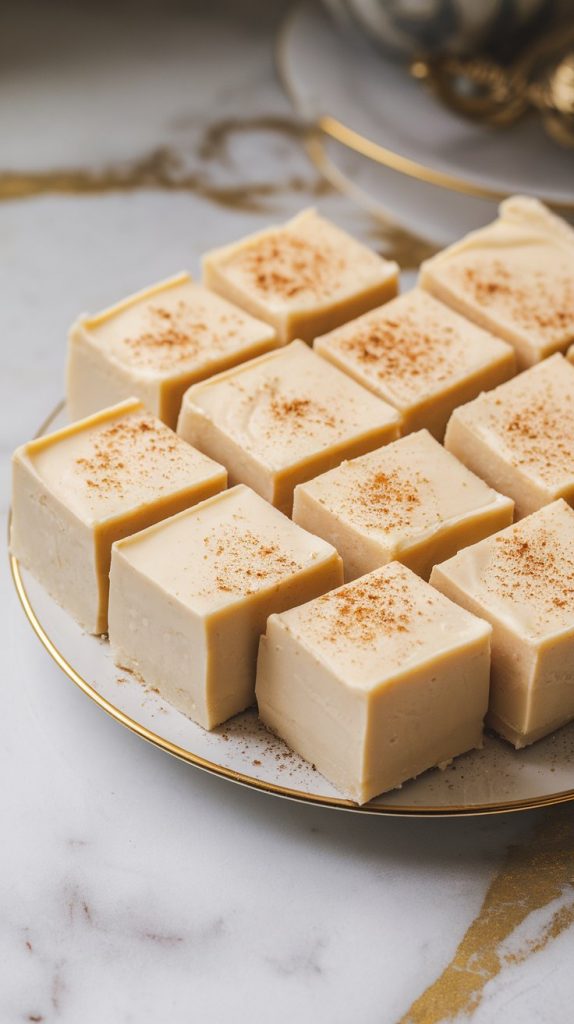 Pour the fudge into an 8×8 inch baking dish lined with parchment paper. Spread evenly and sprinkle a bit more nutmeg on top if you like. Let it chill in the fridge for at least 4 hours or overnight until firm.