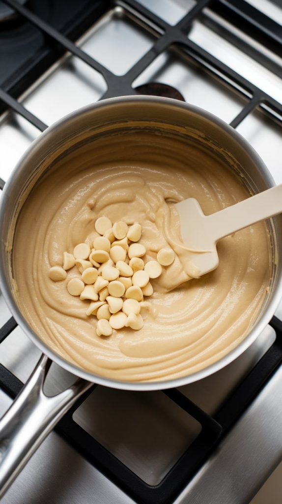Step 3: Remove from heat and add white chocolate