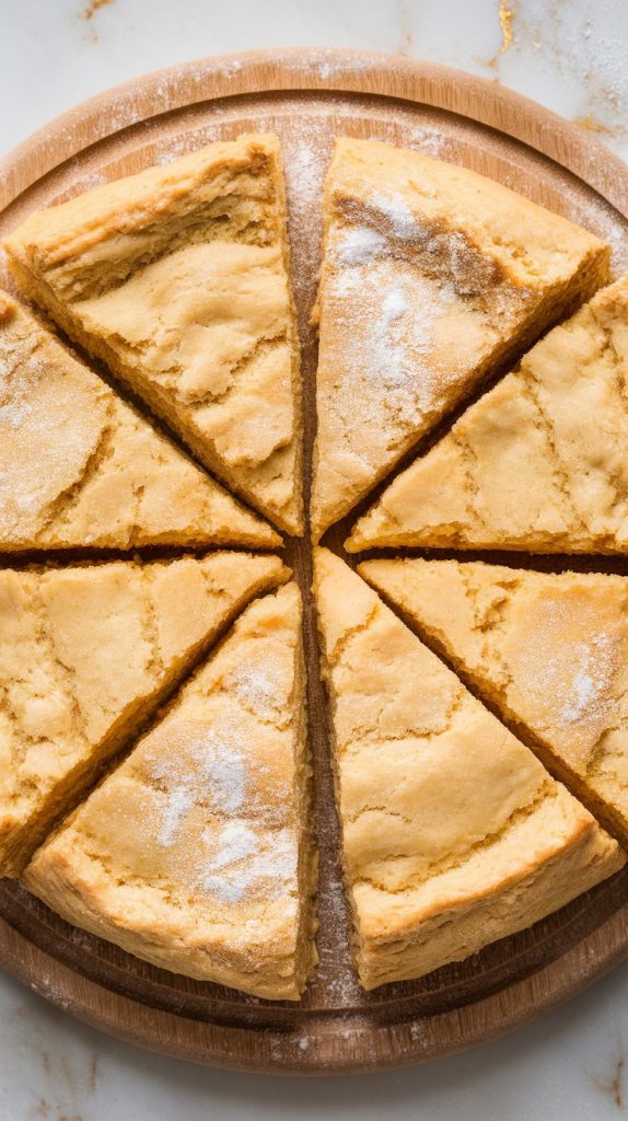 Transfer wedges to a parchment-lined baking sheet, spacing them slightly. Brush tops with extra eggnog. Bake at 400°F (204°C) for 18–22 minutes until golden brown on the edges.