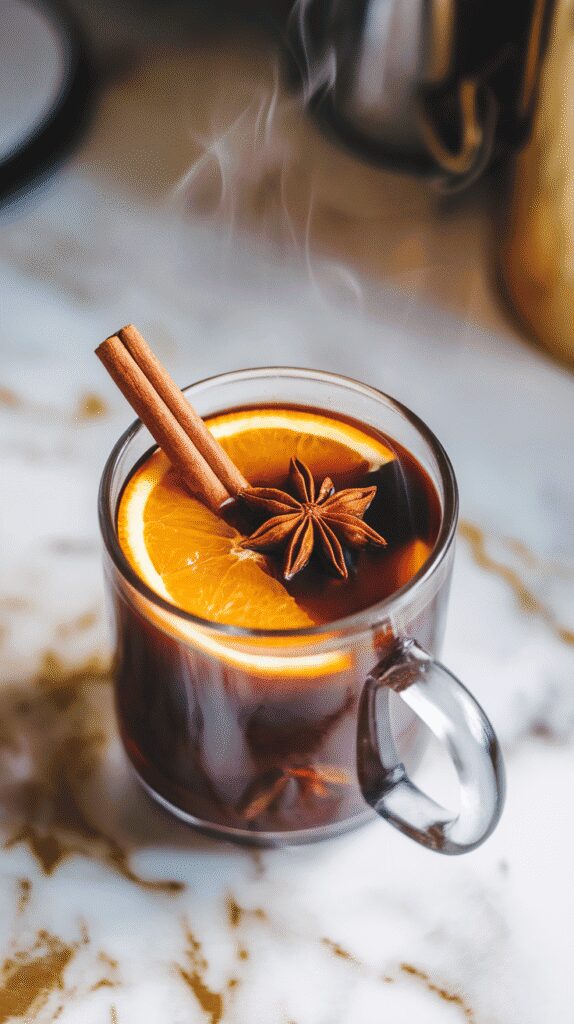 This punch simmers brewed coffee with spices like star anise, cloves, and orange peel. It’s served warm and great for gatherings or slow weekends.