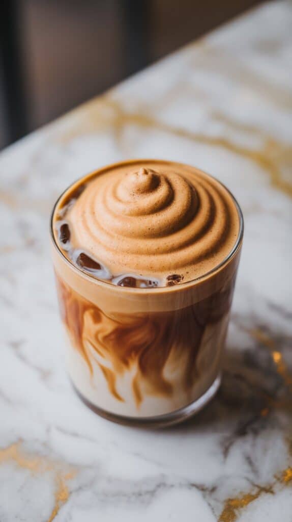This creative mix of apple cider and cold brew sounds surprising but works. It’s fruity, slightly tart, and balanced by the smoothness of the coffee.