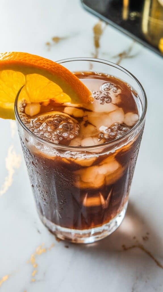 Pour into a tall glass. Add an orange slice or lemon zest on top if you like.