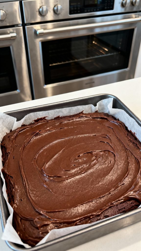Pour the batter into a parchment-lined 8×8 inch pan. Spread evenly. Bake at 350°F (175°C) for 25–30 minutes, until the center is set but slightly fudgy.