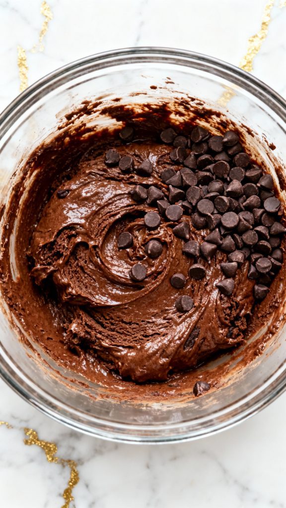 Add 1/2 cup semi-sweet chocolate chips and fold them into the batter evenly.