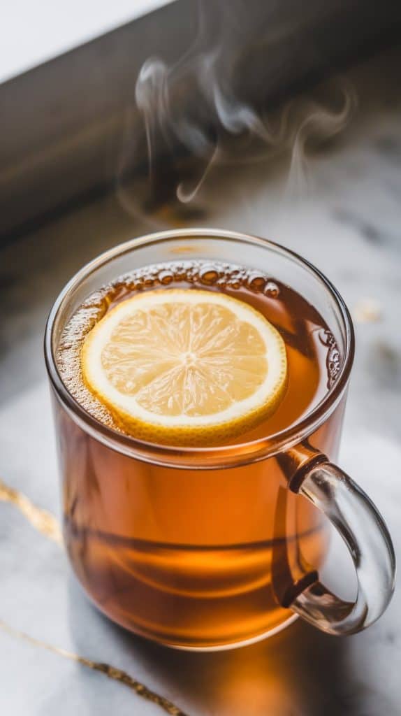 Strain the tea into a mug, squeeze in some Meyer lemon juice, and stir in 2-3 tablespoons of honey. Garnish with a lemon slice for that extra cozy touch.