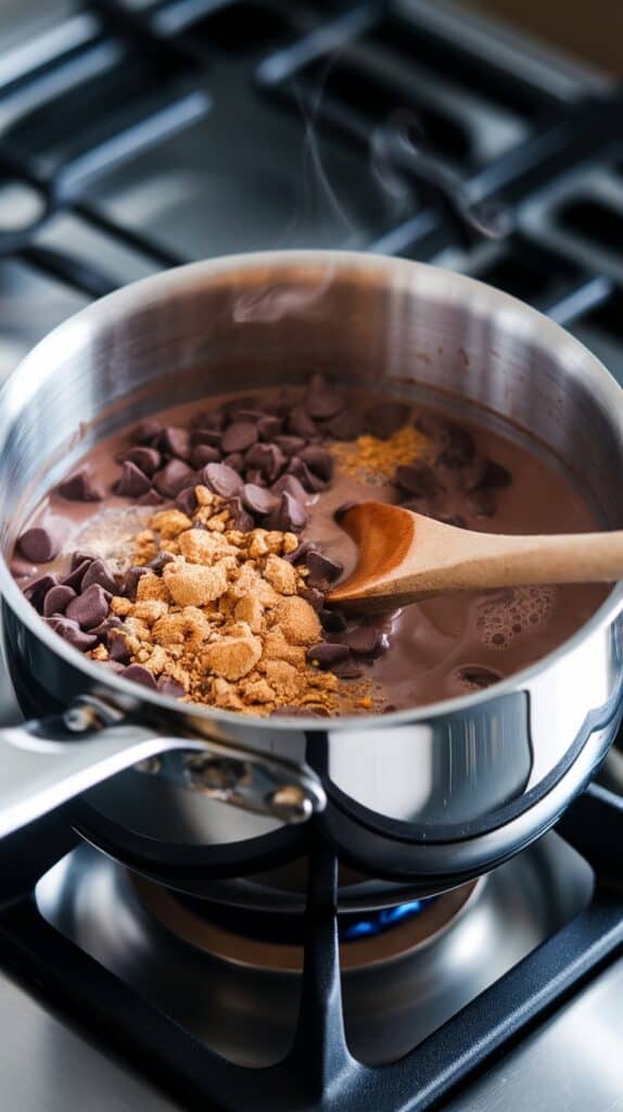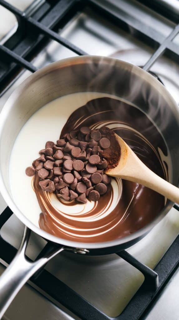 - Melting chocolate chips and cocoa powder together gives a layered chocolate flavor
