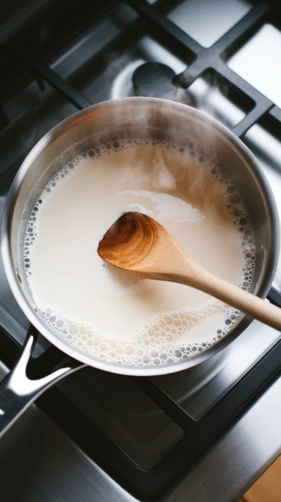 - Heating milk with cream gives a richer, smoother texture than milk alone