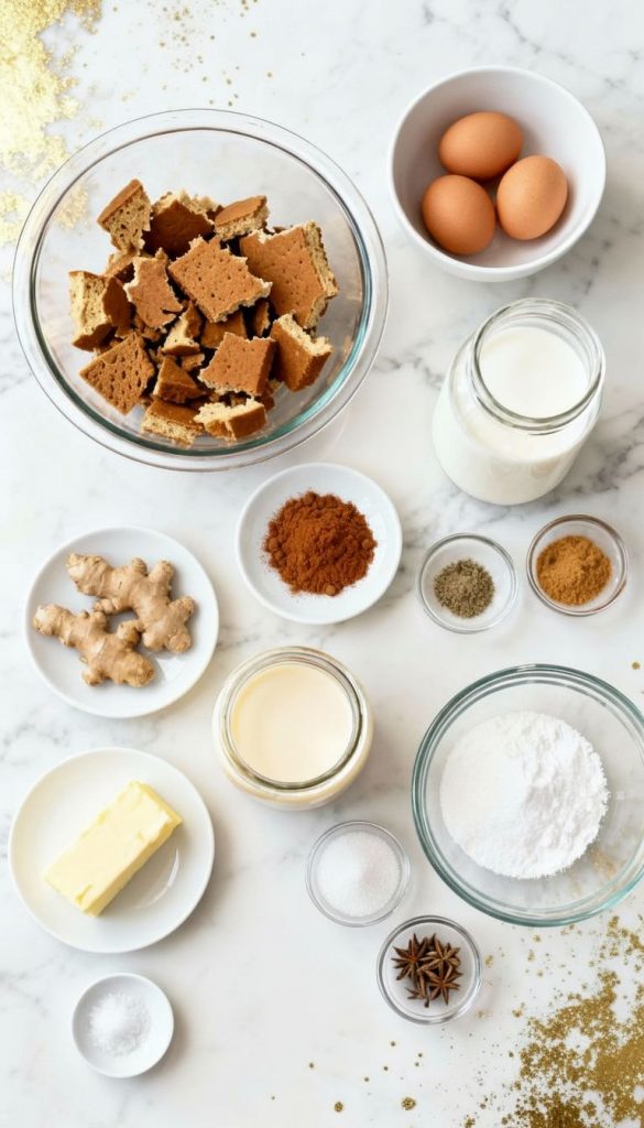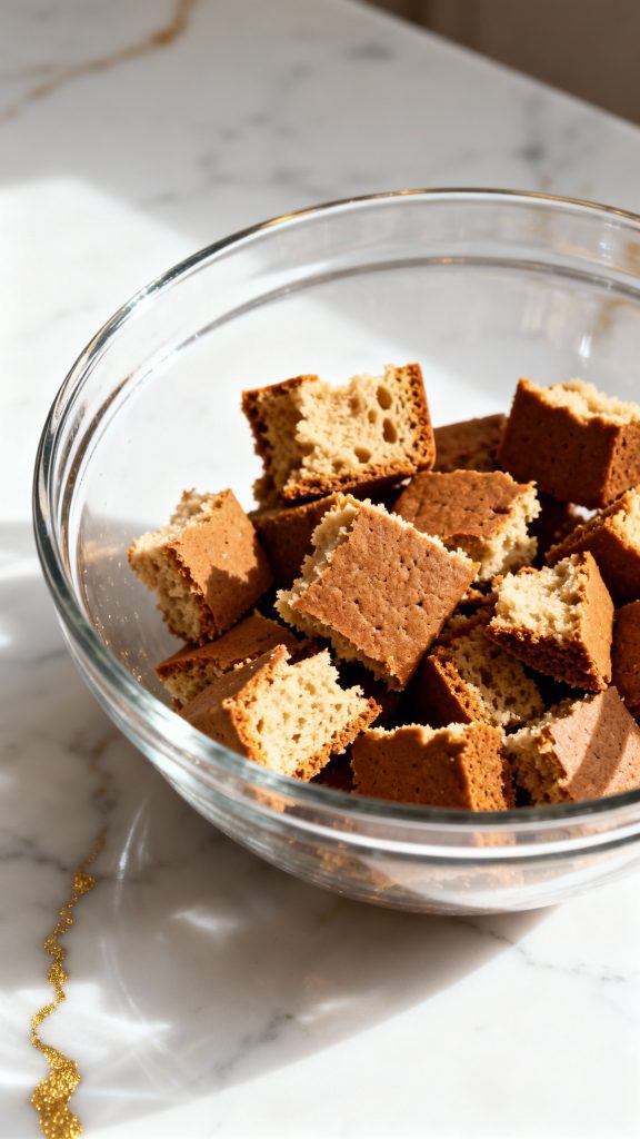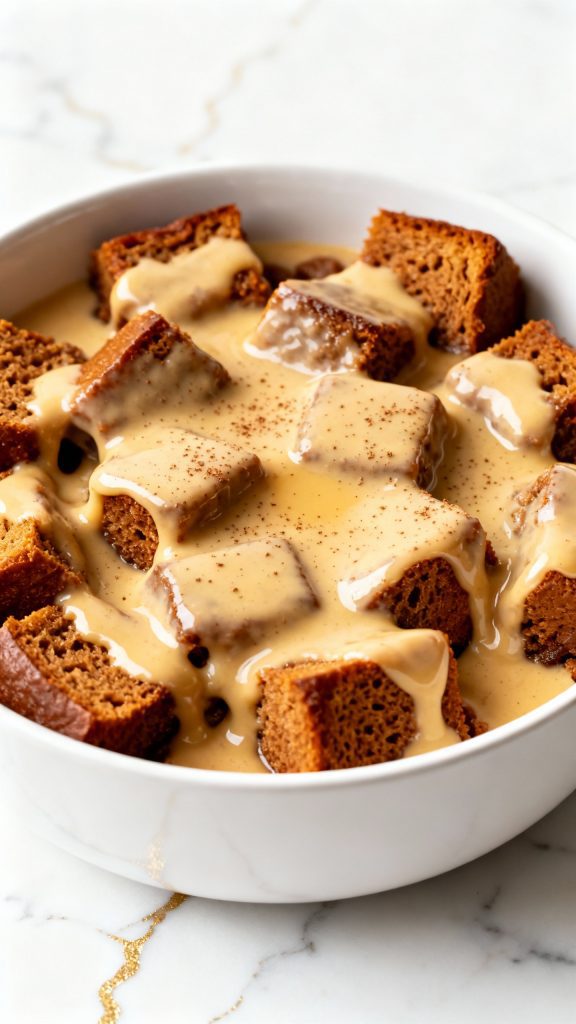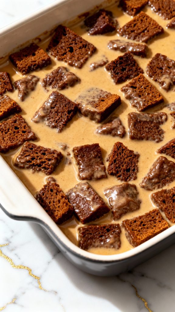 - Slightly stale gingerbread works best—it soaks up the custard without getting mushy