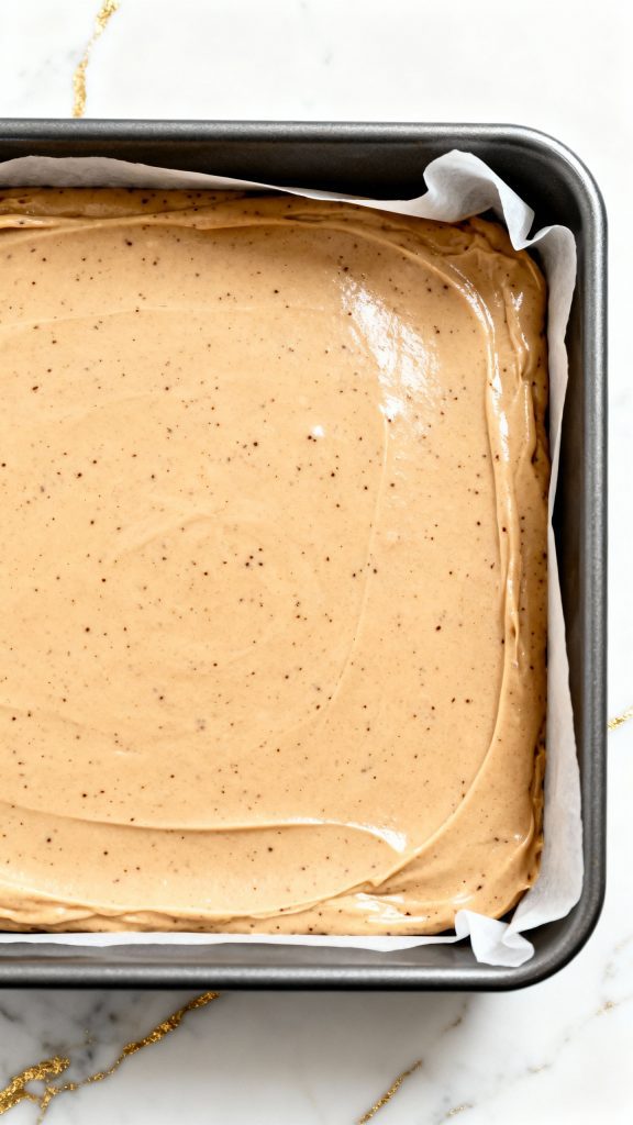 Immediately pour the smooth mixture into your prepared baking pan and spread it evenly with a spatula.