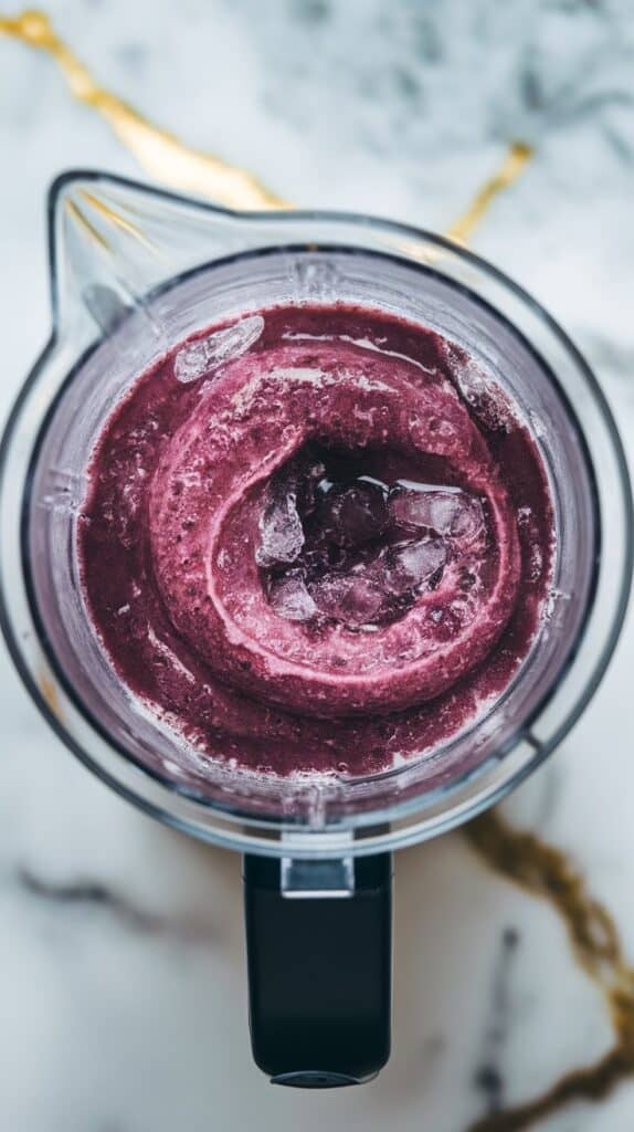 Blend on high until thick, icy, and bright purple, stopping to scrape down the sides if needed.