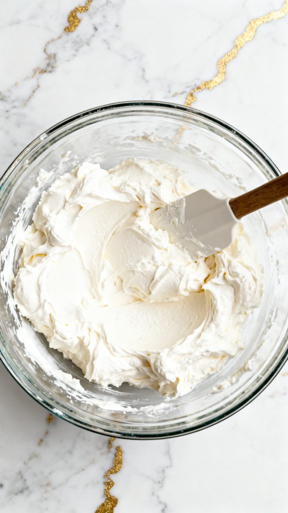In a clean bowl, beat 8 oz softened cream cheese, 1/4 cup softened butter, and 1 tsp vanilla extract until smooth. Slowly add 2 cups powdered sugar and beat until creamy and fluffy.