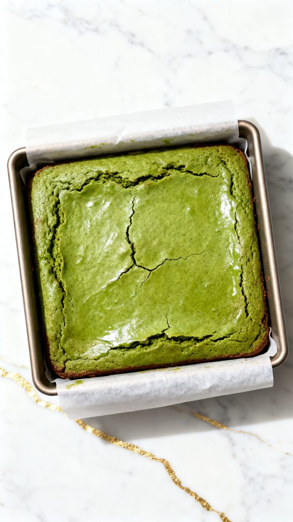Line an 8×8 pan with parchment paper. Pour the batter in and smooth the top. Bake at 350°F for 28–30 minutes. Let cool completely in the pan.